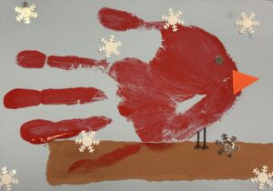 January 9: Handprint Snowy Landscape Red Birds