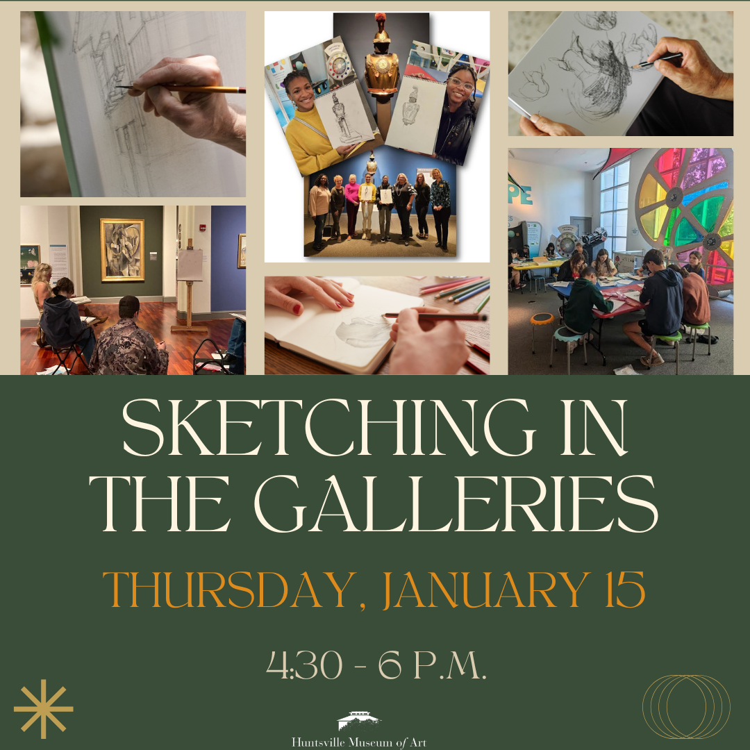 Register Online at course.veevart-apps. com/huntsvillemuseumofart3/ catalog/winter-2026-sketching- in-the-galleries-for-high- school-adult
