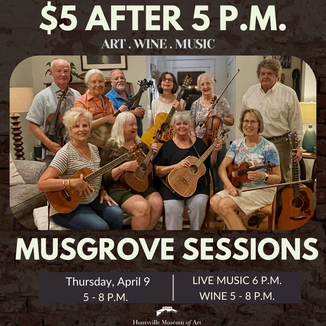 Huntsville Museum of Art 300 Church Street S.W., Huntsville, AL, United StatesFebruary 19 Alan Little, Guitar 6 p.m. – 7 p.m. Selection of Wine 5 p.m. – 8 p.m. Members: Free | Non-members: $5 Join us for a relaxing Thursday evening at the Huntsville Museum of Art! Enjoy $5 admission from 5 p.m. to 8 p.m., and explore the latest exhibitions or revisit your favorite [...]