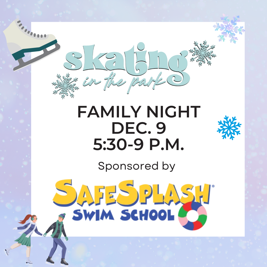 Skating in the Park Family Night sponsored by SafeSplash Swim School During Family Nights skaters can enjoy Free skate rentals ($5 discount) from 5:30 to 9 p.m. The rink will be open from 4-9 p.m.