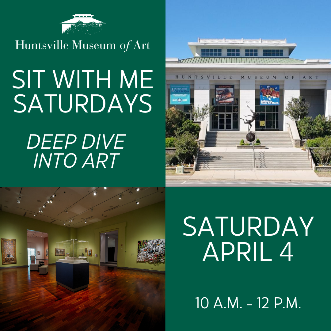 Join the Huntsville Museum of Art Docents for Sit with Me Saturdays! Saturday, April 4 10 a.m. – 12 p.m. This program is dedicated to slow looking and mindfulness. This monthly event invites visitors to join the museum docents in the galleries to practice “slow looking”, an immersive approach to experiencing art. Visitors are [...]