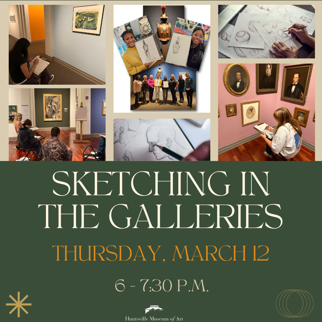 Sunday, March 15 2 p.m. First Look is an opportunity for docents and visitors to engage with the Huntsville Museum of Art’s new exhibitions and artwork. During this time you will find our Docents stationed by various works of art, ready to answer any questions you have about the piece. On the first Sunday [...]
