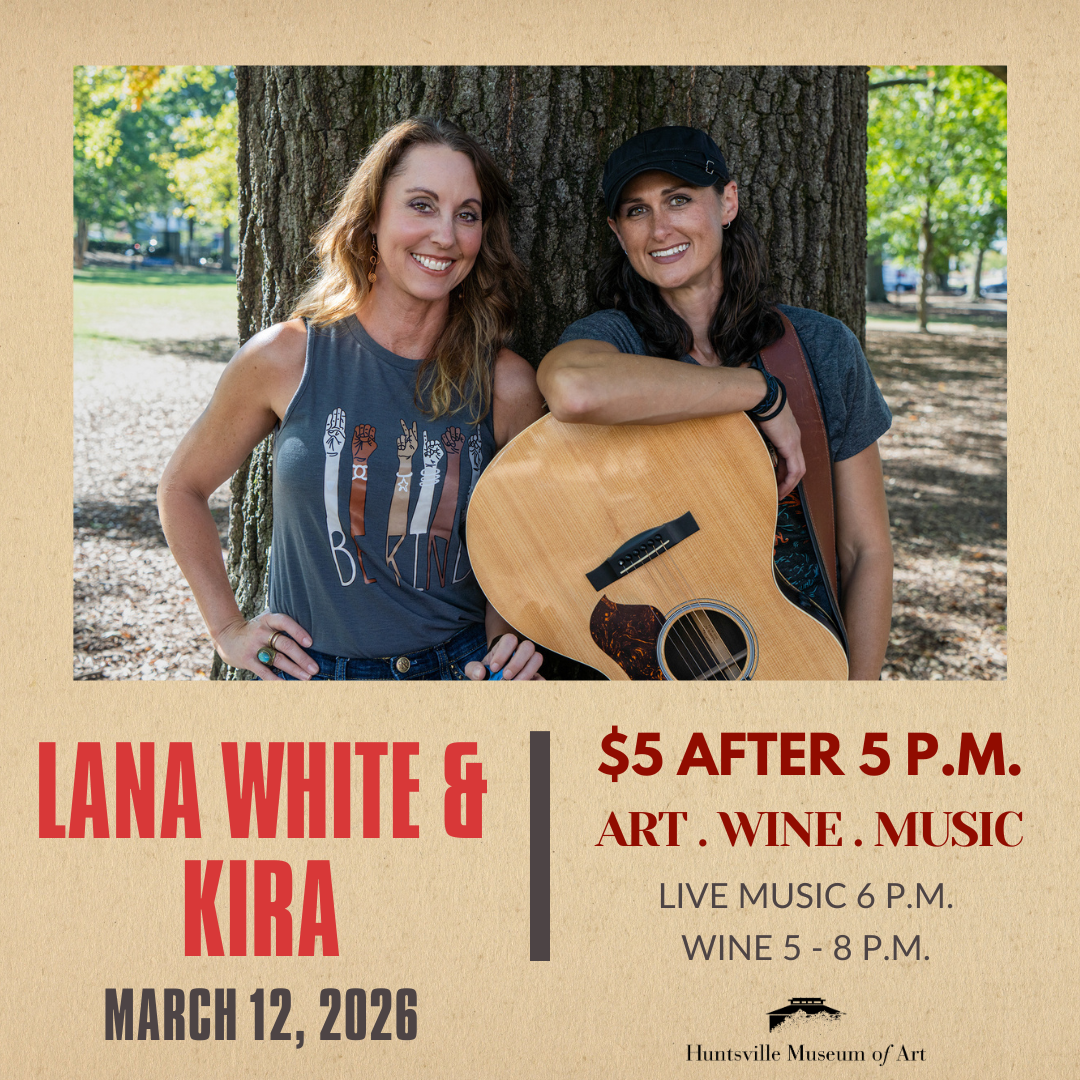 March 12 Lana White and Kira 6 p.m. – 7 p.m. Selection of Wine 5 p.m. – 8 p.m. Members: Free | Non-members: $5 Join us for a relaxing Thursday evening at the Huntsville Museum of Art! Enjoy $5 admission from 5 p.m. to 8 p.m., and explore the latest exhibitions or revisit your favorite [...]