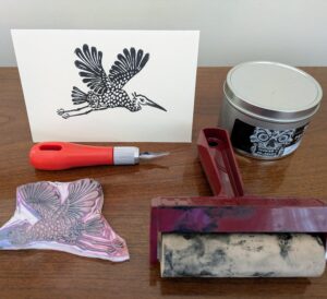 This hands-on class introduces linocut printmaking from start to finish. Students will learn the basics of design, safe carving, inking, and printing, with a focus on translating simple drawings into bold, printable images. Each participant will create a birds or botanicals themed design, carve it into soft blocks, and then print a set of cards. The class is beginner-friendly and relaxed, with no prior printmaking experience required. Students will leave with their carved linocut block, a small edition of hand-printed cards, and a strong foundation in linocut tools, materials, and process. Materials provided. Space is limited to 8 students.