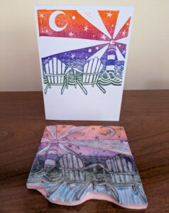 This four-week series provides a deeper exploration of linocut printmaking through a variety of projects and techniques. Students will design, carve, and print a variety of bold summer motifs – including gyotaku-inspired fish, colorful fruits, and destination postcards. This series will explore different linocut printmaking techniques such as multi-colored “jigsaw” prints, ombre inking, and printing on different surfaces. This class is great for beginners and returning printmakers. No prior printmaking experience required. Materials provided. Space is limited to 8 students.