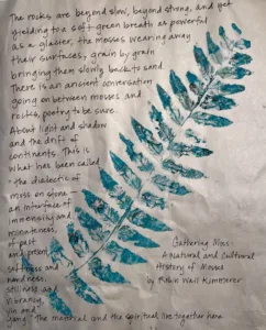 Students will learn how to create compelling gelli prints and combine those prints with text. Learn a variety of techniques, such as free writing, experience-based writing, found poetry, and gelli printing using stencils, natural materials, and photo transfer. Materials included.