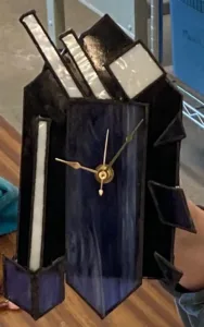 Learn about glass-cutting, patternmaking, copper-foiling, soldering, and construction. Create a wall clock using a technique of varied shapes of glass. Materials included. Space is limited to 6 students.