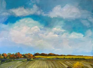 Learn to capture the natural beauty of the earth and sky that surrounds you! In this class, Lucy will show you how she builds a landscape painting from both photographs and imagination. Students will focus on painting skies and building all the colors in the clouds, fields and creating depth and dimension in land. She will also show you how she paints different types of trees and shrubs Learn elements of composition, color mixing-especially greens, value and contrast. She paints mostly using the negative space technique so you will also learn the basics of this method and how it can enhance not just landscapes but any subject. Space is limited to 10 students.