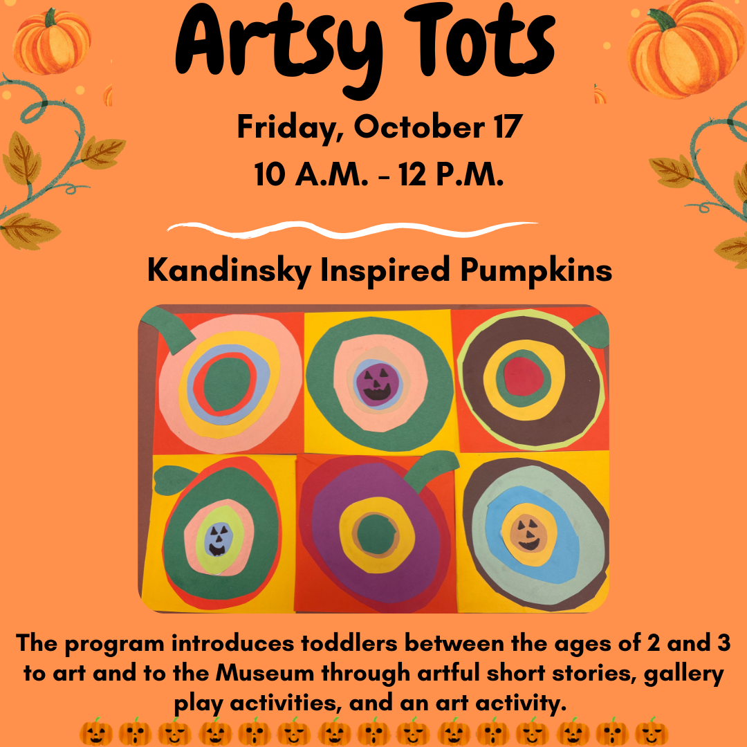 Artsy Tots! Ages 2-3 Registration is required. The program introduces toddlers between the ages of 2 and 3 to art and to the Museum through artful short stories, gallery play activities, and an art activity. The program helps with color recognition, fine motor skills, hand-eye coordination and more! Artsy Tots classes are on a Friday [...]
